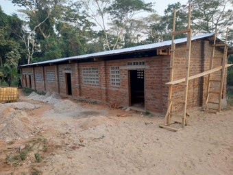 Alle Ziegelsteine, alle Schulbänke und das Dach wurden vorort eigenhändig hergestellt. Die Steine für das Fundament wurden durch die Eltern der Kinder gesammelt.